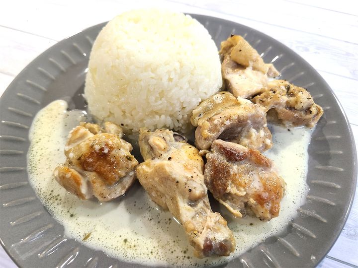 「鶏肉のにんにくクリーム煮にんにくご飯」の作り方