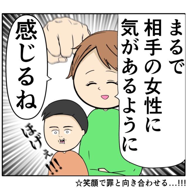 夫の良し男さんがふり子さんと会っている証拠を掴み2人の関係を問い詰めていると、すみれさんはモラハラだと恐縮しながらも訴え続ける良し男さん。「ふり子さんに言われたの?私がモラハラだって」と良し男さんに尋ねます。それを聞いて動揺する良し男さん。すみれさんはふり子さんとの関係を説明してと良し男さんに言いました。すると、急に「モラハラの話、後回しにしたらいけない気がする。今日ふり子さんと一緒に来た心理学に詳しい友達も」と良し男さんが突然堂々と話し始めました。これを聞いてすみれさんは、不倫せずに家庭を壊して良し男さんを手に入れることがふり子さんの真の狙いだと気づいたのでした。良し男さんが洗脳されていると知ったすみれさんには考えがありました。「良し男の意見も聞くから私の意見も聞いてくれる?ふり子さんの事だけど・・・」とすみれさんが良し男さんに笑顔で話し始めました。