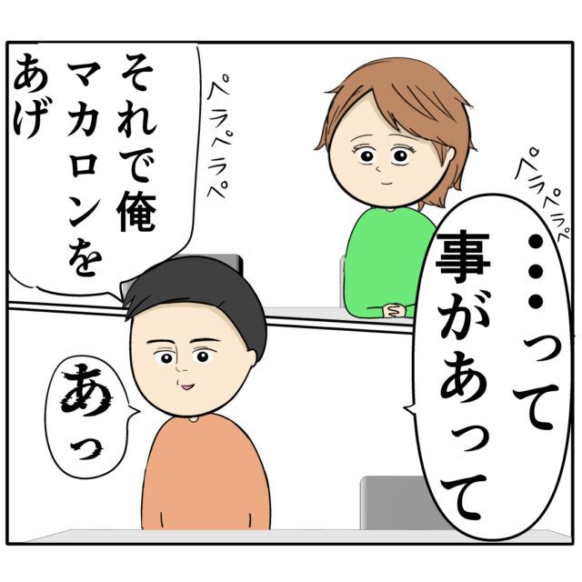 「・・・ってことがあって。それで俺マカロンをあげ・・・あっ」