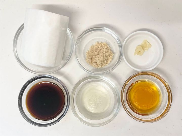大根の皮を剥いてすります。おろしだれの材料を混ぜ合わせておきます。