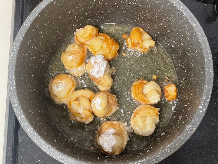 衣が固まるまでは、30~40秒ほど動かさないように揚げましょう。