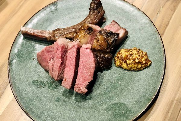 お待ちかねのラムチョップが焼き上がりました。香ばしいお肉の香りにローズマリーの香りが重なり食欲をそそります。 一口で食べやすい大きさにカットされたお肉の上にはトリュフ塩が!食べると口の中いっぱいに幸せの香りと味が広がります。 そのまま最後まで塩だけで食べても良いのですが、添えつけられたマスタードを使ってみると、これまた違った味を楽しめました。