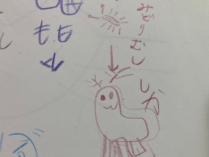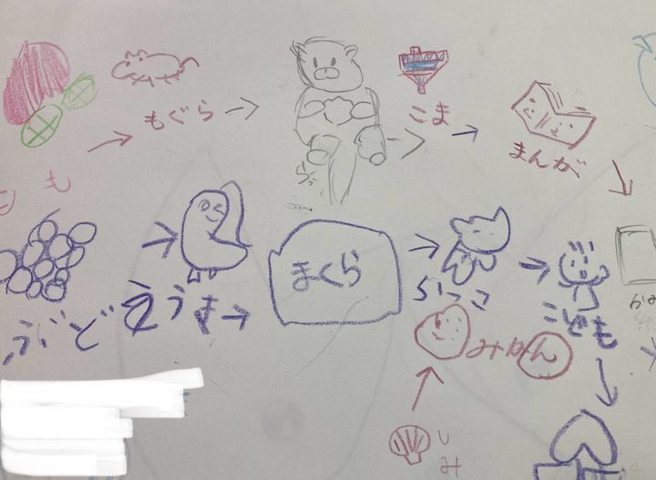 まだまだ1年生はしりとりに付き合ってくれるけれど、4年生はちょっと飽き飽き。なので、絵でしりとり遊びしてみたら、コレが以外とおもしろい絵が出てくる出てくる。良ければ写真でみてください。