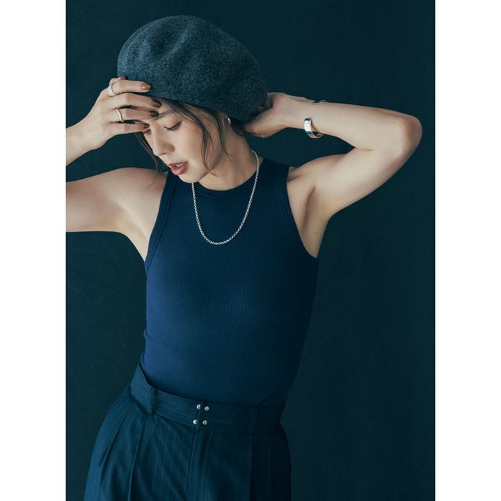ウールキャップ¥17,600(IRIS47/フーブス)タンクトップ¥3,980(オペーク ドット クリップ)サンダル¥10,780(Paes/ロースバッド ルミネエスト新宿店)チノパンツ¥13,200(ジーンズファクトリークローズ/ジーンズファクトリー 卸団地本店)ピアス¥15,400リング¥12,100(ともにシトラリー)ブレスレット¥162,800(ジジ/ホワイトオフィス)バッグ¥61,600(ニューイ/ショールーム ロイト)ベルト¥12,100(レフィエ/アンタイトル)