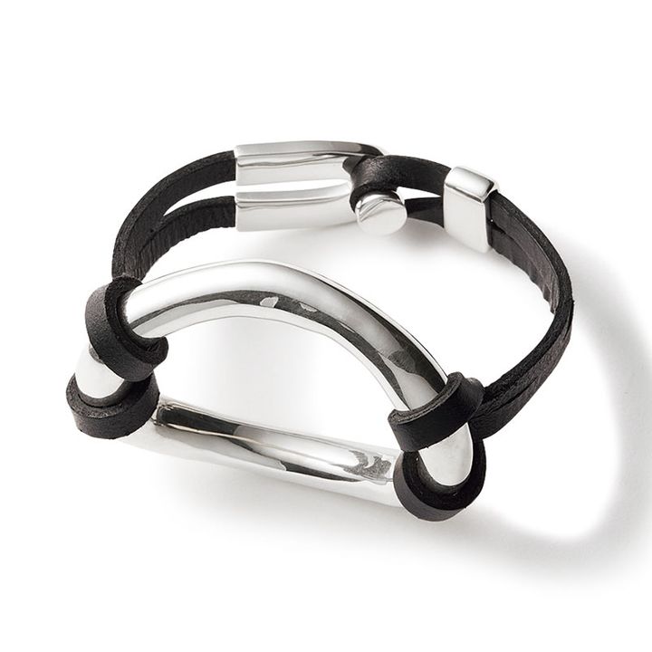 ソリッド感が強いシルバーも、レザーコンビにすることで俄然リッチアップ。黒レザーならよりハンサムな印象に。