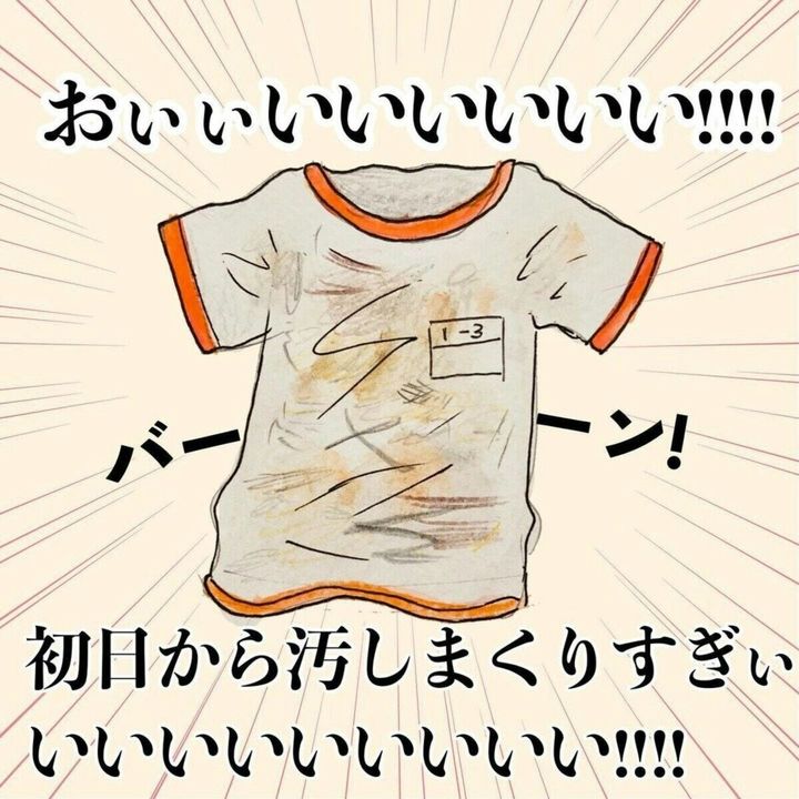 元気が良すぎるのか、楽しく過ぎるのか、初登校2日後に持ち帰ってきた体操着をみてArareちゃんさんは仰天!なんと、初日からどれほど運動したのか知りたくなるほど汚れた体操着が。