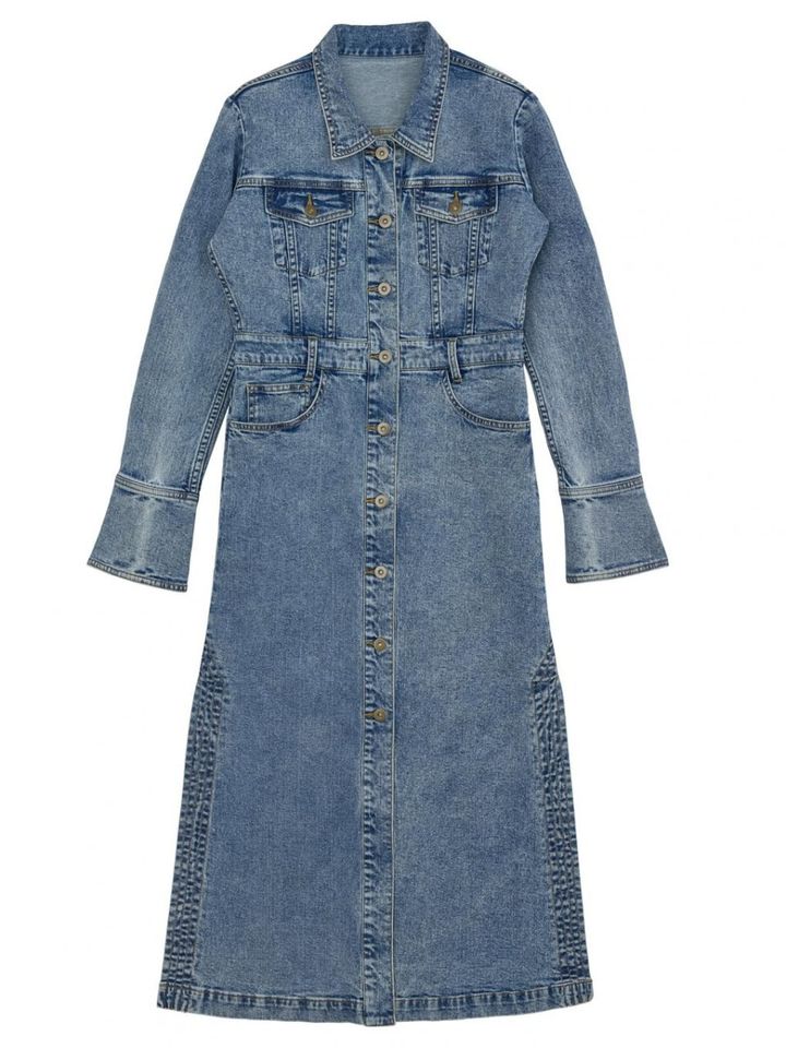 「デニムシャツドレスはアイラインシルエットかつ深いスリット入りなので、カジュアルながらもレディな雰囲気で着用することができてお気に入りです」デニムシャツドレス¥25,300(アメリヴィンテージ)