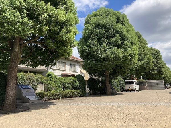 この顕彰碑は早稲田実業学校の正門のすぐそば。周りには緑もあり、とても綺麗な場所ですね〜。