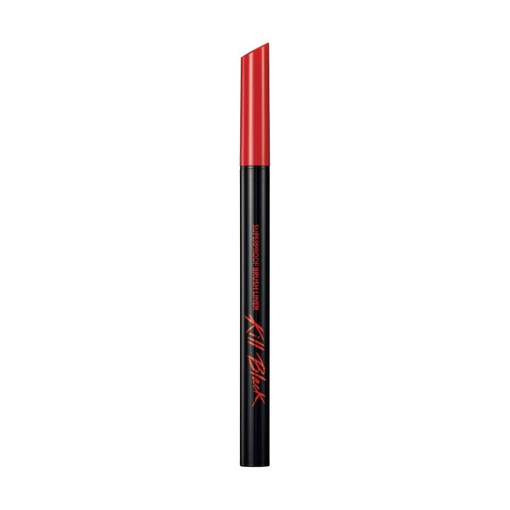 極細毛のブラシでにじまず描ける。上まぶたのキワに入れ、最後少しだけ上にはね上げることでシャープなイメージに。スーパープルーフ ブラッシュ ライナー BLACK ¥2,200(クリオ)