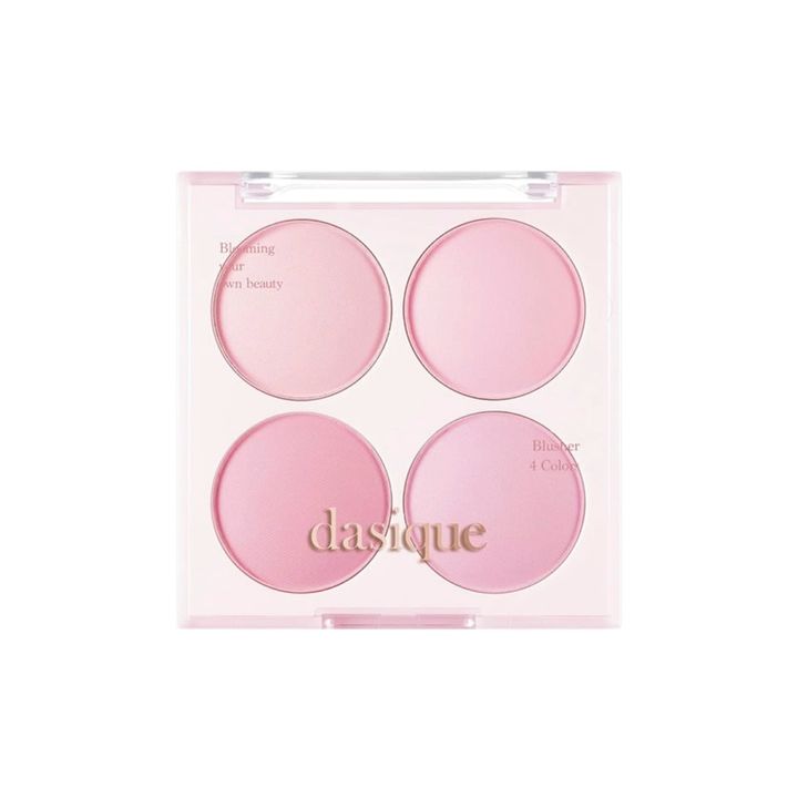 水彩画のような発色のパレットは上2色がアイシャドウで、下2色がチーク。今回はアイシャドウ2色を上まぶたと下まぶた全体にレイヤード。デイジーク ブレンディングムードチーク 08 ブルーベリーソルベ(スタッフ私物)