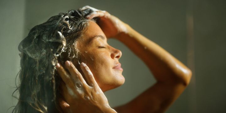 シャワーを心地よい水温に設定したら、ここでフェイスマスクを洗い流し、頭皮をスクラブ。「Redken」や「K18」「Kerastase」のシャンプーがお気に入り。