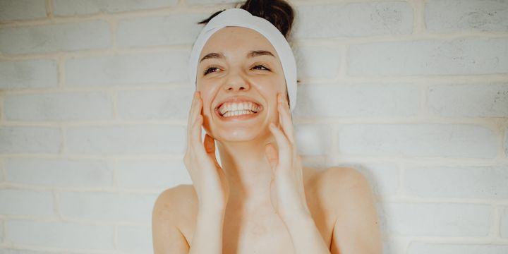 次のステップは、メイクや日焼け止め、余分な皮脂をきれいに取り除くオイルクレンズ(私はダブル洗顔を徹底しているから)。これは、ステップ3をするための前準備でもある。私が愛用しているのは、DHCの薬用ディープクレンジングオイル。これで肌を1分ほどマッサージしたら、水を少し加えて乳化させる。洗い流したあとは、ペーパータオルで軽く水分を拭き取る。