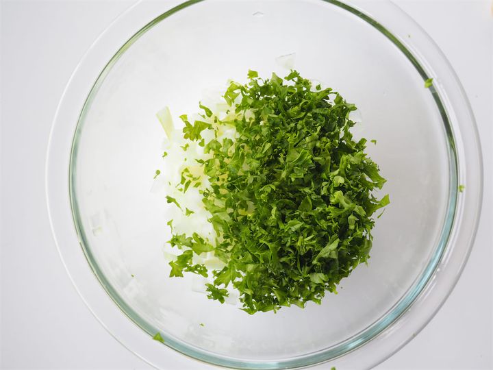 パセリを軽く水で洗い、みじん切りにしたら、9のボウルに入れる。