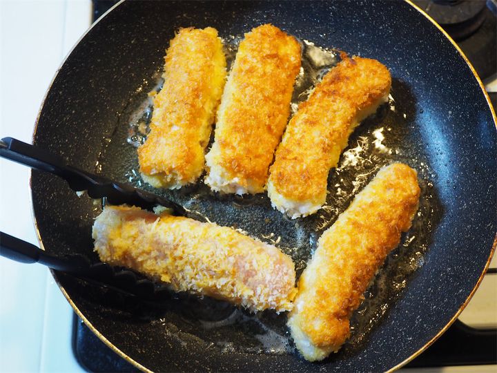 バッター液、パン粉の順番で5につけたら、フライパンに入れ揚げ焼きにする。
