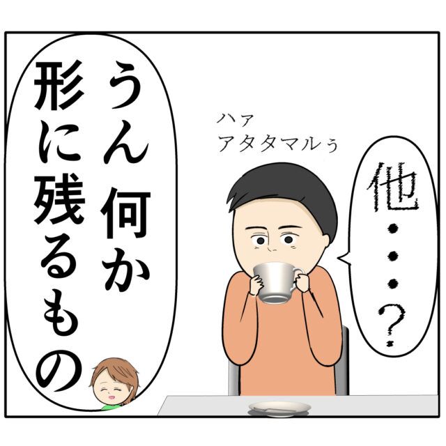 「他・・?」コーヒーを飲みながらキョトンとする良し男さんに、「うん。何か形に残るもの」とすみれさんがもう一度たずねました。