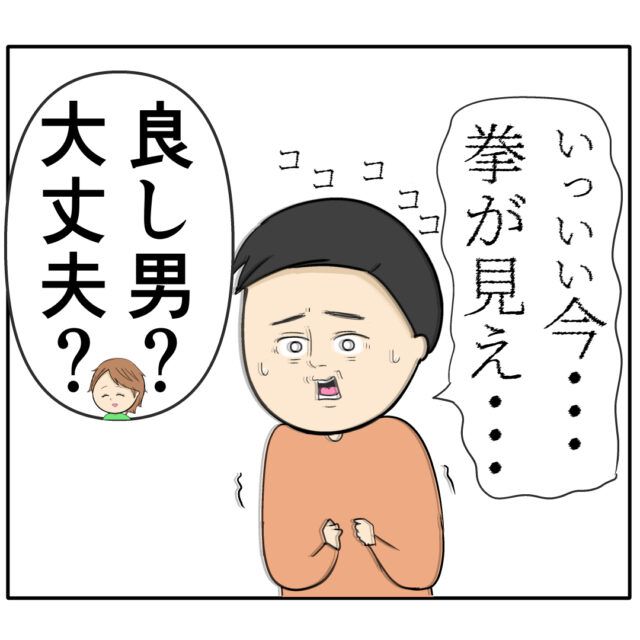 「相手の女性に気があるように感じるね」すみれさんにそう言われ「ほげぇっ!!」と驚く良し男さんは、「いっ、いい今・・拳が見え・・」と動揺、それを見て「良し男?大丈夫?」とすみれさんが声をかけました。