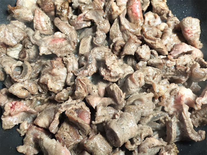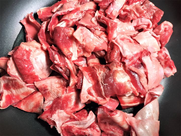 1. フライパンに油(分量外)を軽く引き、牛すじ肉を入れて中火にかけます。