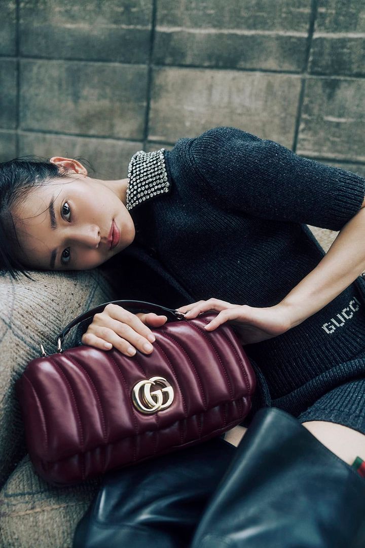 静謐な力強さの中にどこかに危うい脆さもあって、ドキッとして目が離せなくなる—、これぞ彼女の魅力の真骨頂。寄り添うのは、注目の新作バッグ「GGミラノ」。