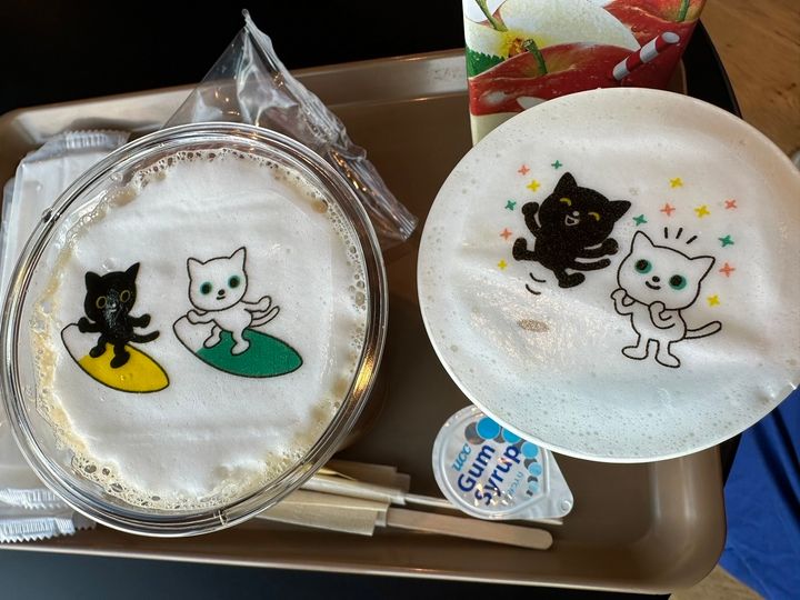 お馴染みの黒猫ちゃんが描かれたどら焼きにラテアート!