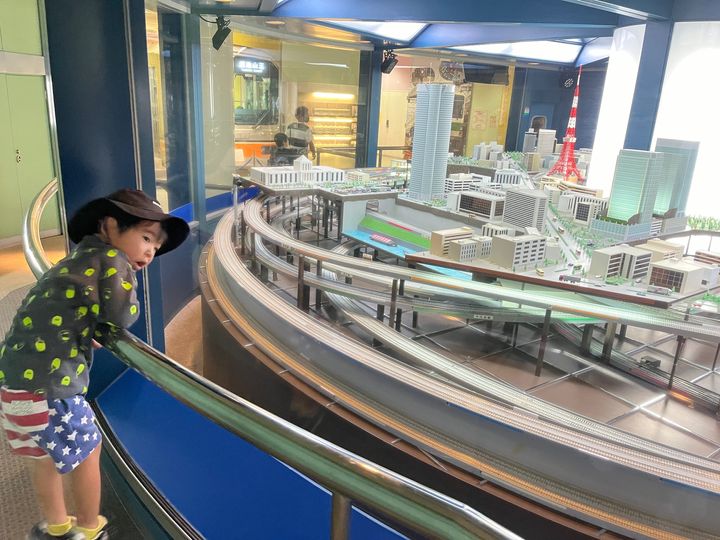 地下鉄を通る街の模型があり、真剣に見ていました!