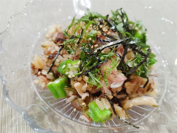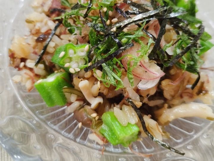薬味をたっぷりのせて涼し気に「簡単オクラご飯」