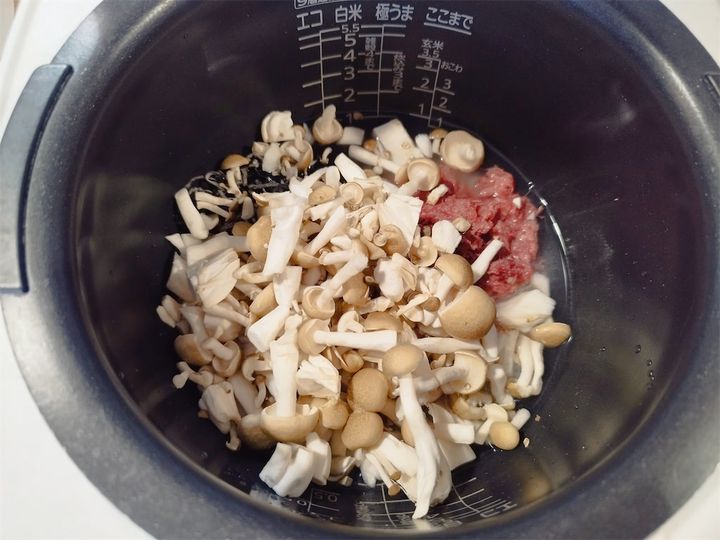 今回はレシピでおすすめされていた炊飯器の「早炊きモード」で炊きました。