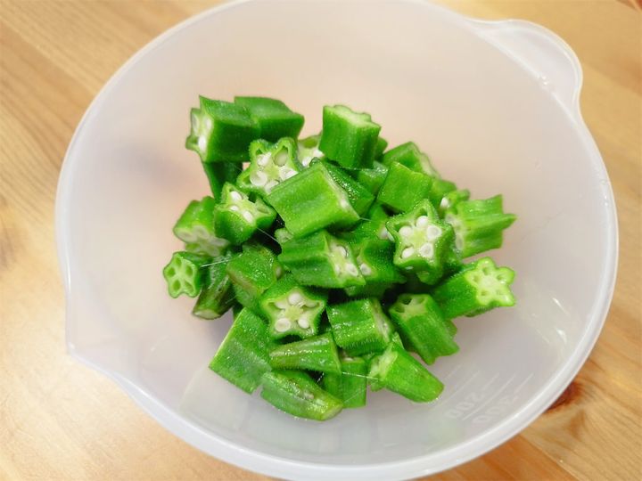 蒸らしすぎるとオクラの色が悪くなってしまうので、食べる10分前に入れるのがおすすめです♪
