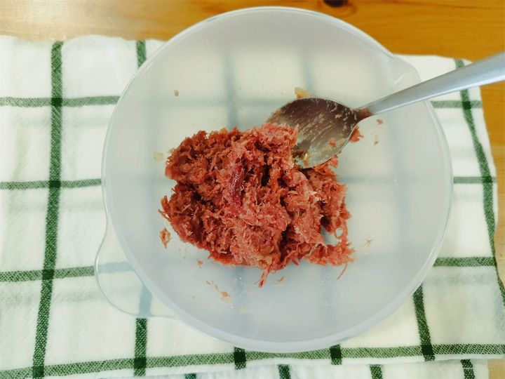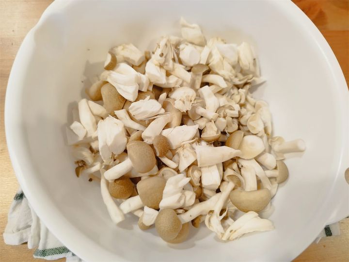 1.しめじの石づきを切り落とし、一口大に切る。コンビーフはほぐす。