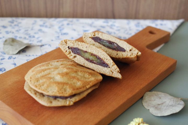 栗の粒を入れたあんの中には、やわらかなもちが入っています。ねっとりとした食感とツブツブになった栗、あんの組み合わせが絶妙で満足度大。カステラ生地もふわふわで、1個食べると小腹が満たされます。
