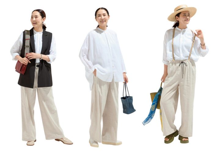 【定番服を素敵に】 「ひと工夫」で見違える! 白シャツ×ワイドパンツの着こなし