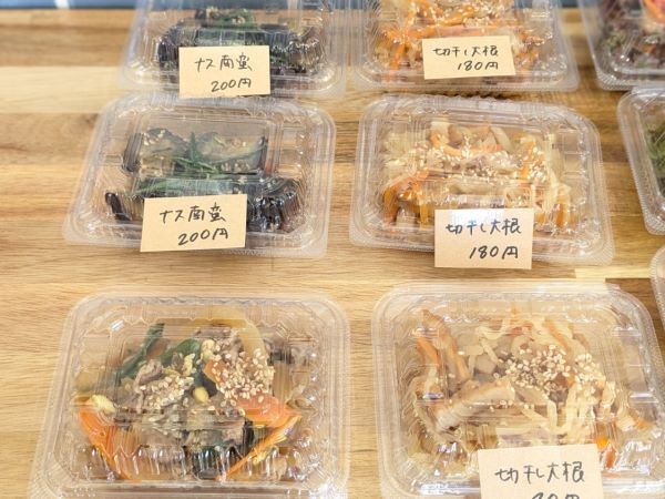 この日に販売していたものの他にも、沢山メニューがありますし、季節によって副菜も変わっていきますので、何度買いに行っても飽きないですよ。10時のオープンでも「遅かね~。」と楽しみにしているリピーターさんも多いのだとか。「季節のものをバランスよく、栄養も摂れるようにしていて、酢の物・煮物・炒め物と味のバリエーションを意識して作っています。」とオーナーの野上さん。