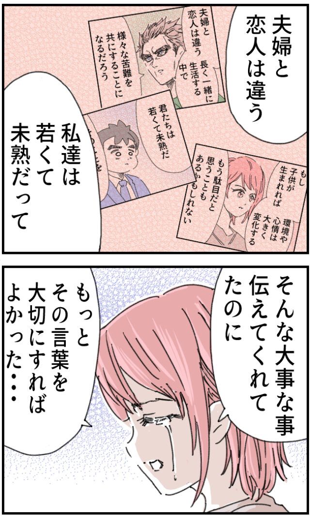 「私達・・・夫婦になるには、親になるには早すぎたんだ・・・」かおりさんの言葉にいちろうさんも涙が溢れます。