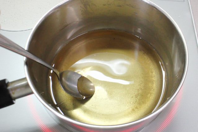 2分ほど加熱し、砂糖の粒がなくなるように、しっかり溶かしました。