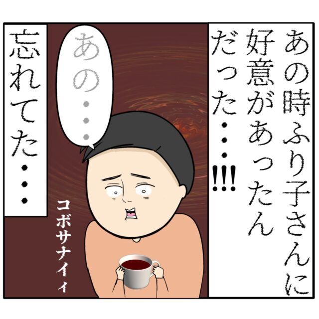 「そうだ・・・俺はあの時ふり子さんに好意があったんだった・・・!!!忘れてた・・・」ふり子さんにお菓子やピアスをプレゼントしていたのは好意があったからだと思い出した良し男さん。