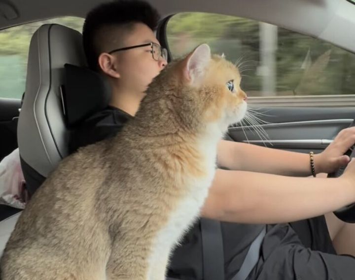3. 真剣な表情でドライブに集中する猫さん、運転しているのは飼い主さんだけどね!
