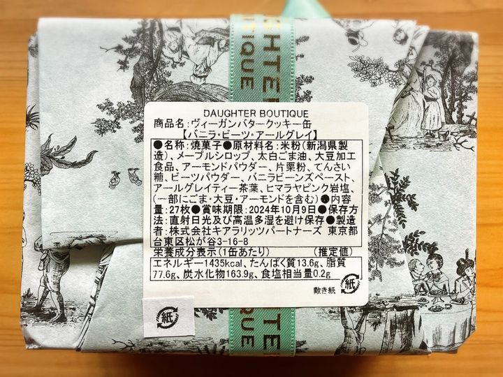 最近あげのは、動物愛護の観点からヴィーガン食を徹底しているママ友へのプチギフト。前々からパッケージのかわいさに心奪われていた、DAUGHTER BOUTIQUE (ドーターブティック)で購入しました。ヴィーガン&グルテンフリーの焼菓子専門店で、原材料の1つ1つにこだわりが感じられます。まさにママ友のこだわりポイントにピッタリ!