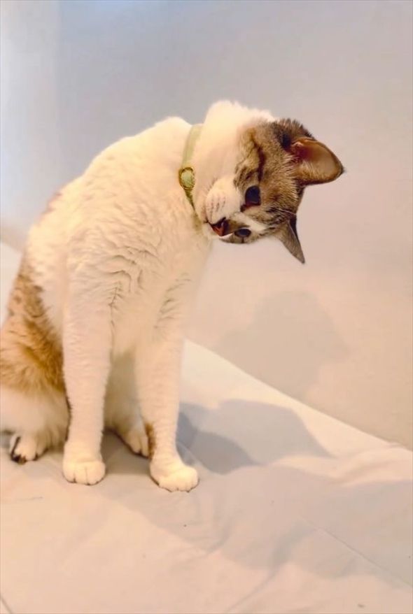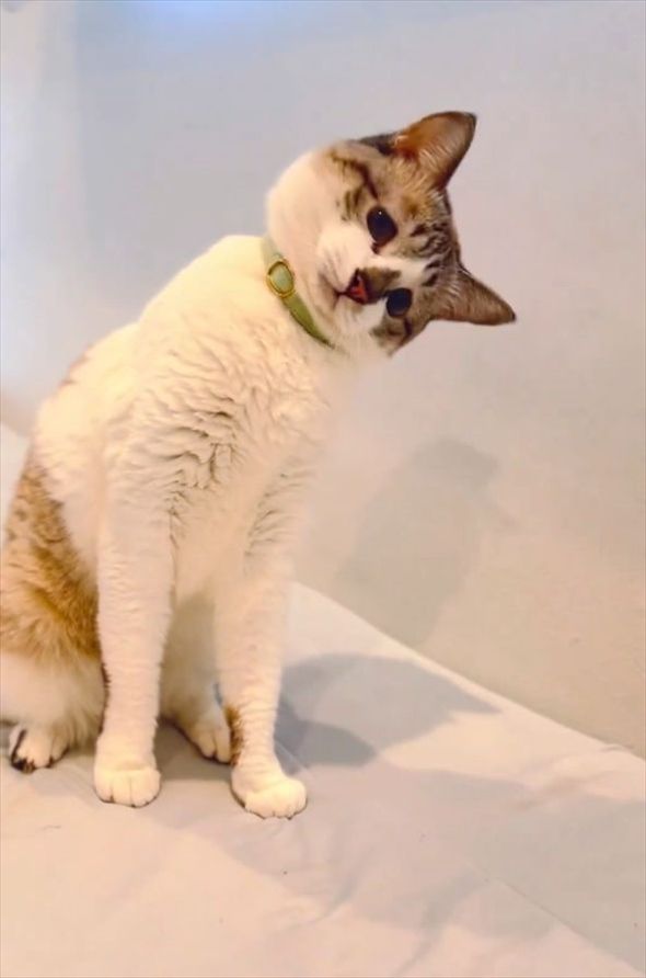 首を傾けるミントちゃん。 その様子は、こちらの投稿内の動画からご覧いただけます。
