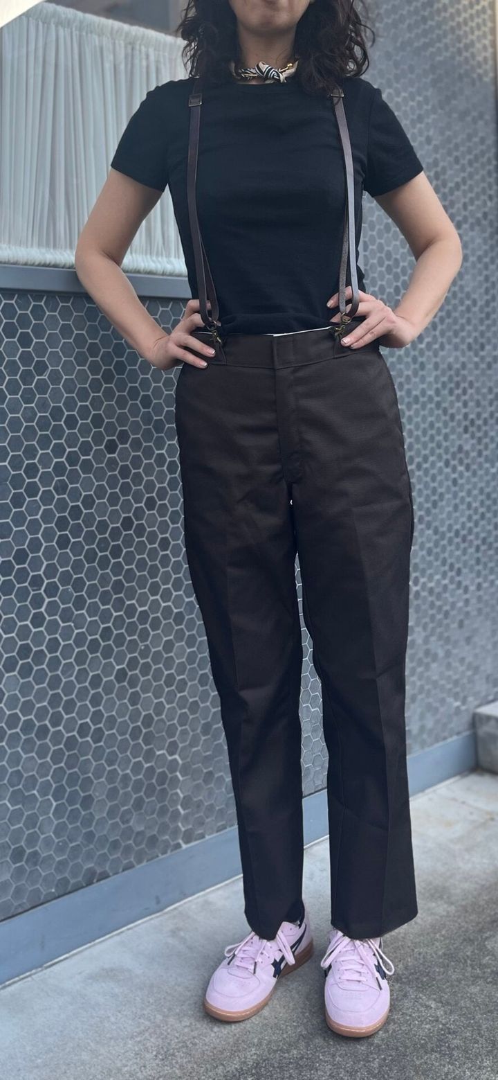 今回、10年ぶりくらいにディッキーズをはきましたが、やっぱりイイですね! クリース入りだからワークパンツでも品よく見えますし、視覚的な美脚効果も期待大。筆者は174cmと高身長なのでスニーカーと合わせましたが、女性らしいヒールとも相性がよさそう!