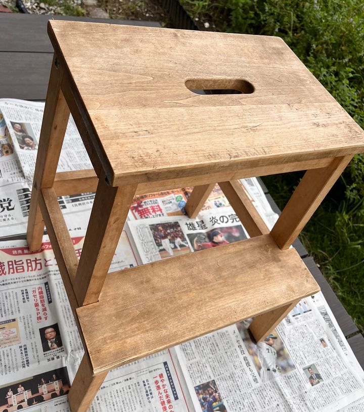 結婚当初、10年前にIKEAで購入した、踏台を塗ってみました。
