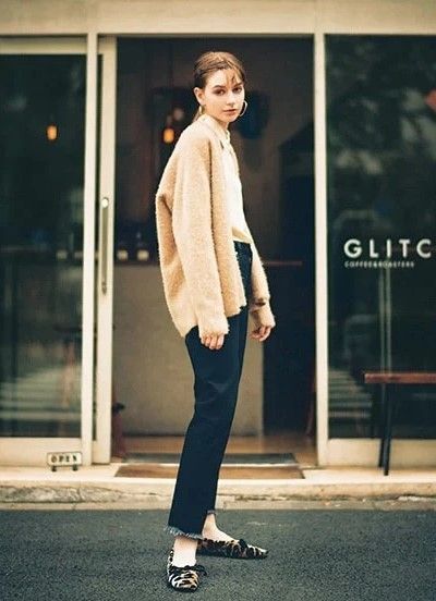 「毎年毎シーズン、冬が終わって春までも、結局使いやすいのはジャケット的にも使える厚みのあるカーディガン。コートの中にも仕込めるちょうどいい厚みというのもポイントです。デニムやチノなどカジュアルなボトムに甘さが加わる、ふんわりとした短い毛足のある素材感がおすすめ」(石関靖子さん)