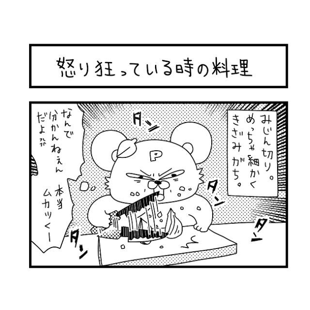 怒っている時の料理は細かく刻みがち、じっくり炒めがち。そして不本意にも美味しい料理ができあがる。|ぽこたろー育児漫画