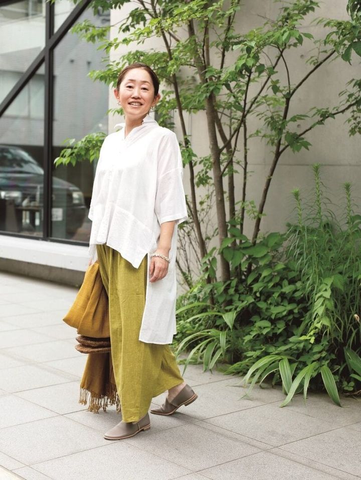 3. 【スナップ】「イエロー」のカラーパンツで気分を明るく! ノンストレスなナチュラルコーデ