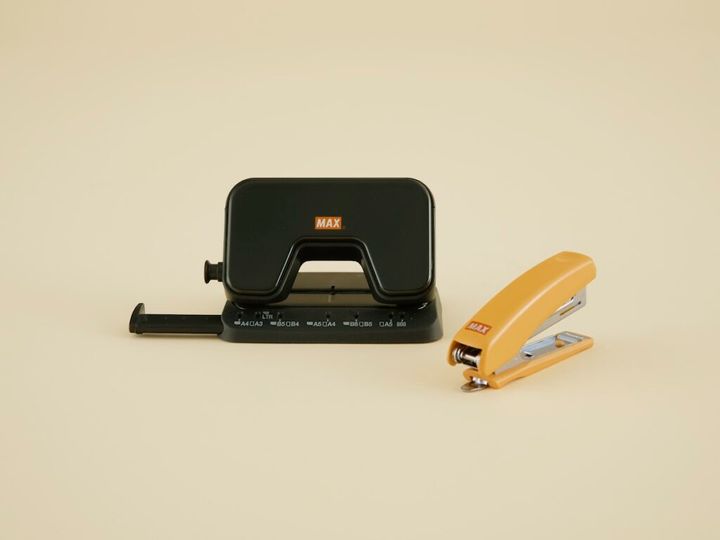 〈オルファ〉のカッターと同様に、〈マックス〉のホッチキスやパンチも日本を代表する文具の一つだと思います。創業は1942年だそうで、ホッチキスに関しては国内No.1シェアを誇っています。その性能の良さはもう折り紙つきで、さすが日本メーカーだと感心してしまうほど。シンプルなデザインにオレンジのロゴが施された製品は、どこに置いてもよく馴染み、気づくとデスク周りにいくつも増えていました。色の組み合わせ次第で、卓上に個性を演出できるのも楽しいですね。