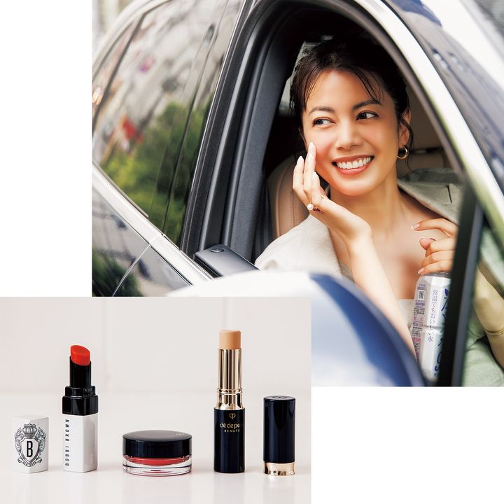 メイクは保湿成分たっぷりな部分用ファンデとチーク、リップでシンプルに仕上げます。移動続きで多忙な日もメイク直しなしで一日中潤い肌をキープできます。