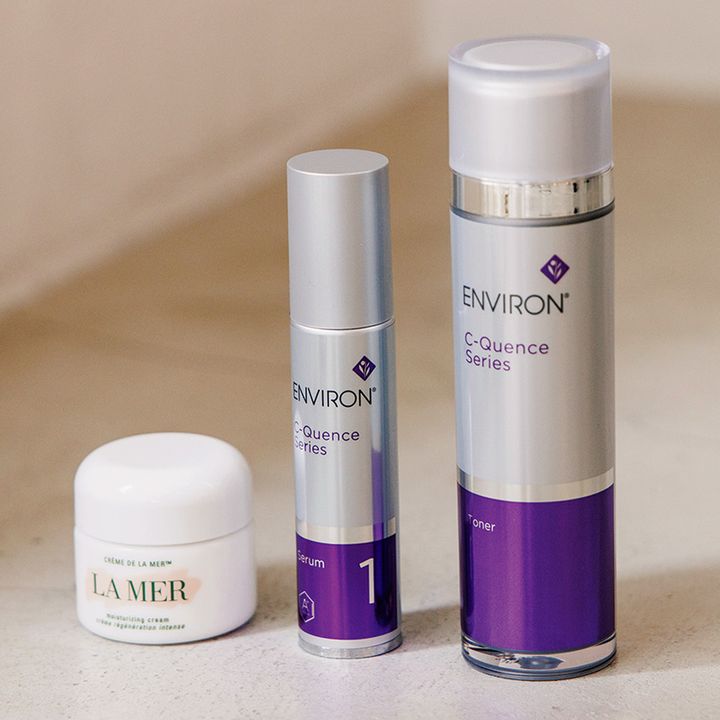 レチノールと保湿ケアは必須。左から:夜はクレームドゥ・ラ・メールで仕上げ。
