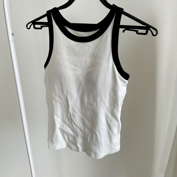 無条件におしゃれに見せてくれるアメスリは迷わず買いです。 配色にも心奪われました。 <商品情報> 商品名:アメリカンスリーブブラタンクトップ サイズ:S カラー:WHITE 品番:471695 価格:¥1,990(税込・セール価格)