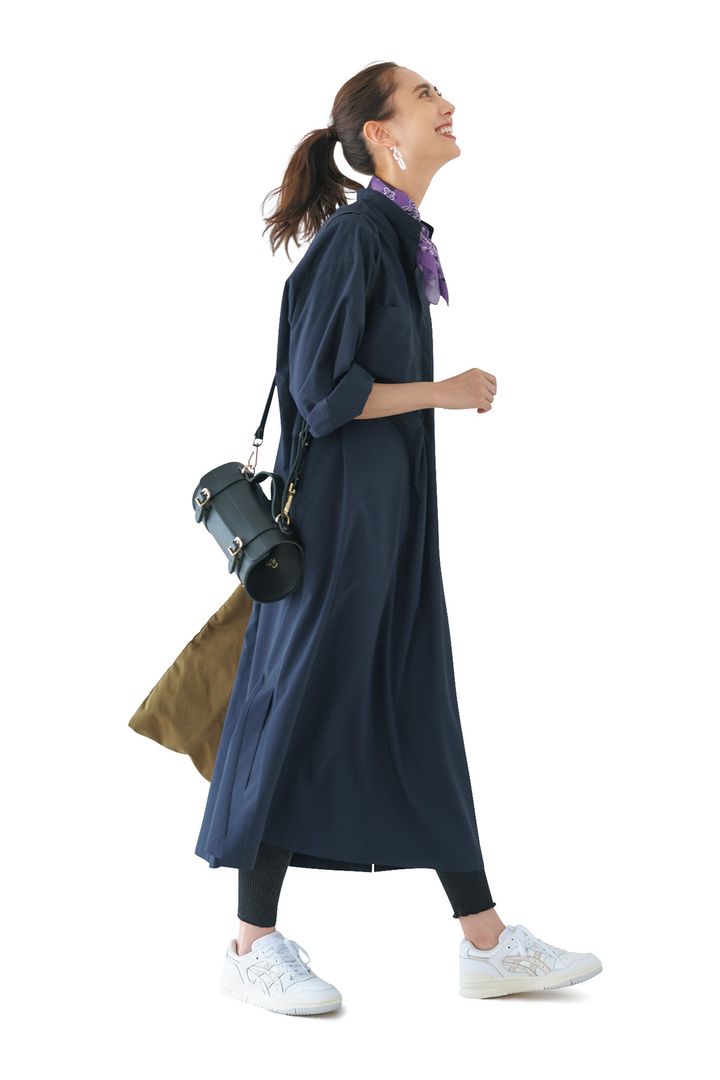 キレイめスニーカーを味方にシャツワンピをヘルシーに刷新