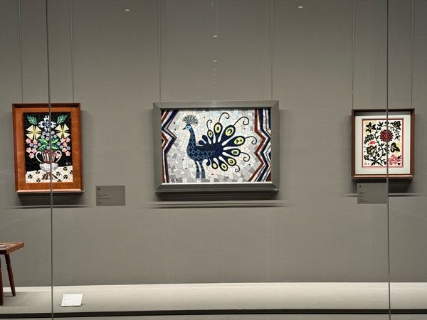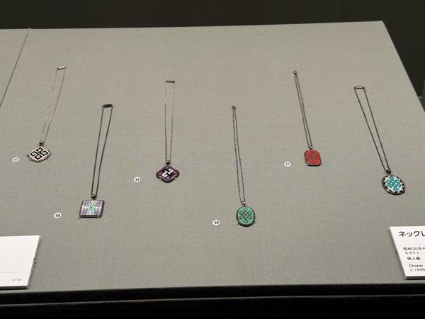 「特別展 昭和モダーン モザイクのいろどり 板谷梅樹の世界」展では、板谷梅樹のモザイク作品はモザイク壁画だけではなく、絵皿、絵画、アクセサリーなど、様々な作品を制作していたことが伺えます。特集展示の茶道具も含めると約100点もの作品が展示されており、昭和モダンなアーティストの魅力が凝縮された展覧会です。