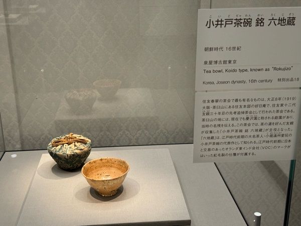 《展示室4》では板谷梅樹展と同時に「特集展示 住友コレクションの茶道具」も開催されています。住友コレクションの茶道具の多くは、住友春翠によって収集されました。明治から大正時代にかけて政財界では、同好の士と茶の湯の世界を楽しむ人々が増え、春翠もその一人でした。