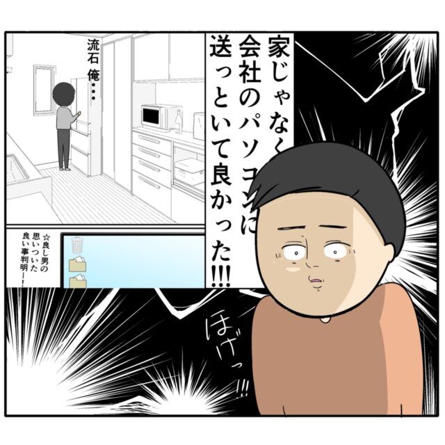 良し男さんは、すかさず白状しました。「会社です!会社のパソコンにあります!」